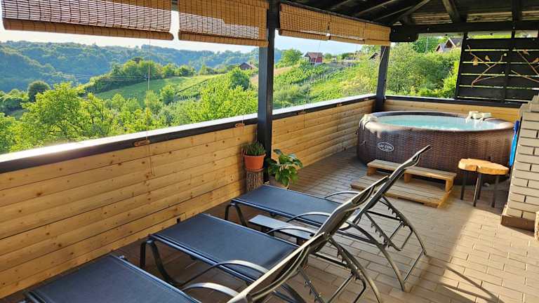 Das GREENHILLS Relax & Holiday House befindet sich in Kebel in der Region Krapina-Zagorje und bietet eine malerische Lage inmitten der Natur. Von Ihrem Balkon aus können Sie den herrlichen Bergblick genießen und die Ruhe und Entspannung fernab vom Trubel der Stadt erleben. Die Umgebung lädt zu Aktivitäten wie Wandern und Radfahren ein und bietet zahlreiche Möglichkeiten, die natürliche Schönheit dieser Region zu erkunden.