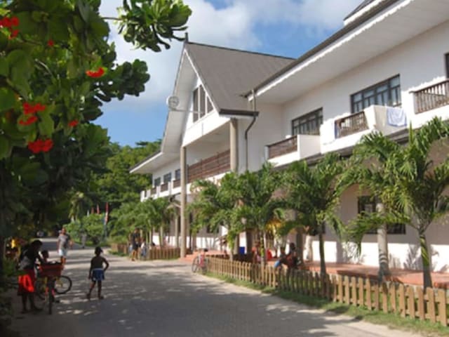 Das Gregoire's Apartment auf La Digue bietet einfache und komfortable Apartments, die Ihnen einen angenehmen Aufenthalt ermöglichen. Sie haben kostenlosen Zugang zu den Einrichtungen des La Digue Island Lodge Hotels, darunter ein Restaurant, ein Anwendungsbereich und ein Außenpool. Das Apartment ist mit Fliesen ausgelegt und verfügt über einen Flachbild-TV und Klimaanlage. Einige Zimmer bieten zudem einen Balkon mit Straßenblick. Das eigene Badezimmer ist mit einer Dusche, einem Haartrockner und kostenfreien Pflegeprodukten ausgestattet. Zusätzliche Annehmlichkeiten wie ein Bügelservice und Wäschemöglichkeiten stehen ebenfalls zur Verfügung. Der kostenlose Transfer vom Bootsanleger La Digue zum Apartment bei der Ankunft und Abreise ist im Preis inbegriffen. Fahrradparkplätze sind ebenfalls kostenlos verfügbar. Die Lage des Apartments ist günstig und in der Nähe von bekannten Sehenswürdigkeiten wie dem Naturschutzgebiet Veuve und dem Union Estate. Restaurants und eine Pizzeria sind zu Fuß erreichbar. Im Erdgeschoss des Gebäudes befinden sich ein Bankautomat und ein Supermarkt. Kostenlose Parkplätze stehen ebenfalls zur Verfügung. Der Flughafen Praslin Island ist 15 km entfernt.