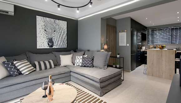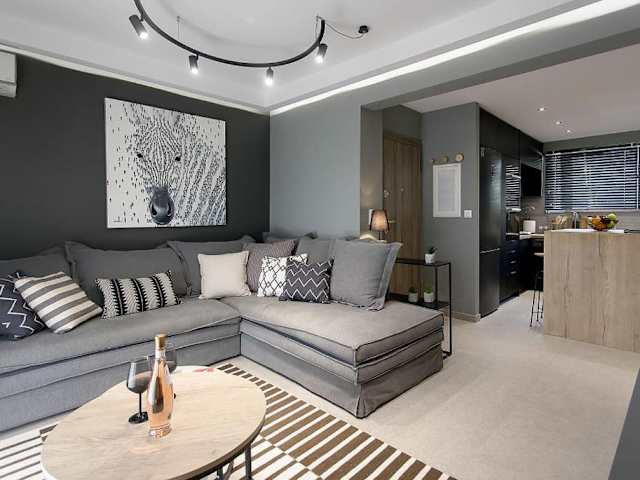 Das klimatisierte Apartment im GreyHouse Corfu διαμέρισμα στο κέντρο τις Κέρκυρας verfügt über 2 Schlafzimmer, ein Wohnzimmer, eine voll ausgestattete Küche mit Geschirrspüler und Wasserkocher sowie ein Badezimmer mit Dusche und Bademänteln. Die Unterkunft bietet Handtücher und Bettwäsche für die Gäste.