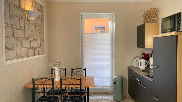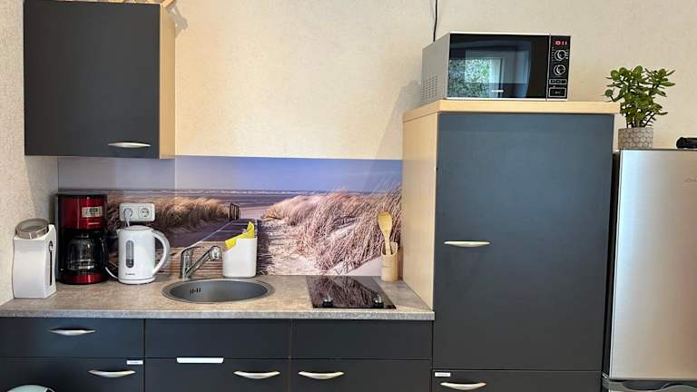 Die Ferienwohnung umfasst 1 Schlafzimmer, eine Küche mit Kühlschrank und Mikrowelle sowie ein Badezimmer mit Dusche und kostenlosen Pflegeprodukten. Zudem sind eine Waschmaschine, Handtücher und Bettwäsche vorhanden.
