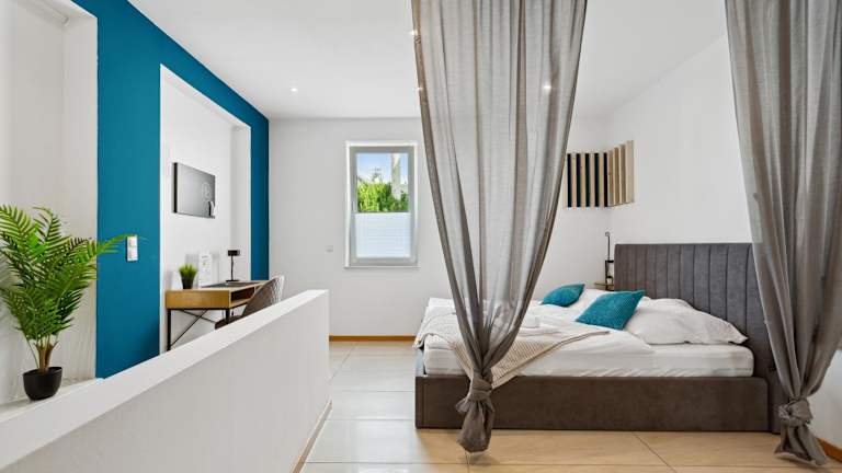 Die Ferienwohnung umfasst 1 Schlafzimmer, ein Wohnzimmer sowie eine voll ausgestattete Küche, die mit einem Kühlschrank und einer Kaffeemaschine ausgestattet ist. Ein Badezimmer mit Dusche und kostenlosen Pflegeprodukten ist ebenfalls vorhanden. Handtücher und Bettwäsche werden zur Verfügung gestellt.