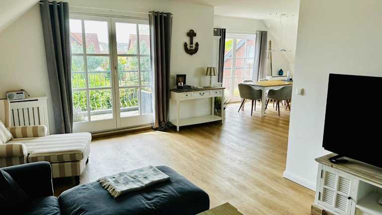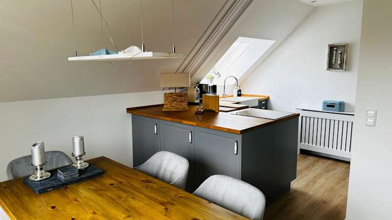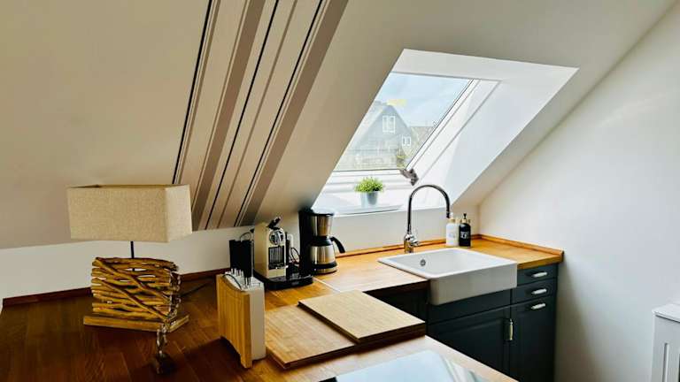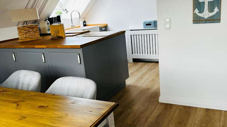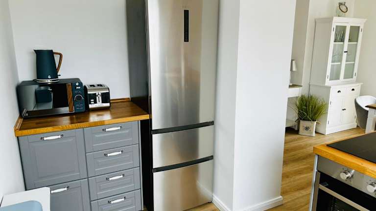 Die Ferienwohnung umfasst ein Wohnzimmer, einen Essbereich, zwei Schlafzimmer und ein Badezimmer mit Dusche. Die Küche ist mit einem Kühlschrank, einem Geschirrspüler und einem Ofen ausgestattet. Handtücher und Bettwäsche werden zur Verfügung gestellt. Zu den weiteren Annehmlichkeiten gehören WLAN, Heizung sowie ein Zugang mit Schlüssel.