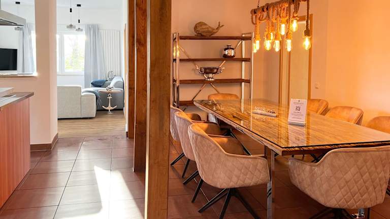 Die Große Ferienwohnung bietet einen traumhaften Hafenblick und verfügt über eine komfortable Ausstattung. Die Wohnung ist Nichtraucher und verfügt über einen kostenlosen Privatparkplatz sowie kostenfreies WLAN. Eine Buchung ist ab 16:00 Uhr bis 23:59 Uhr möglich, der Check-out muss bis 10:00 Uhr erfolgen. Für die Unterkunft gilt, dass weder Junggesellen- noch Junggesellinnenabschiede oder ähnliche Feiern erlaubt sind. Das Mindestalter für den Check-in beträgt 18 Jahre.