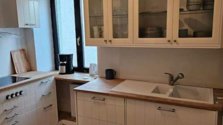 Die Küche der Unterkunft ist vollständig ausgestattet und bietet unter anderem einen Kühlschrank, Geschirrspüler, Ofen, Mikrowelle, Herdplatte, Toaster, Kaffeemaschine und Wasserkocher. Es sind keine Informationen zu Verpflegungsmöglichkeiten wie Frühstück oder Restaurant vorhanden.