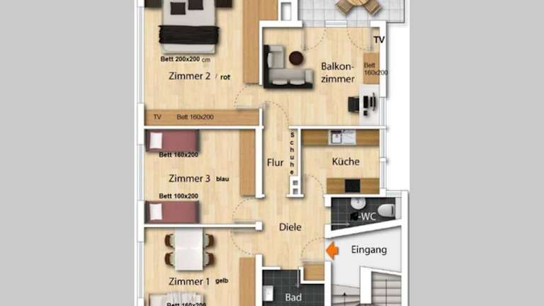 Die Ferienwohnung Große Wohnung bietet Platz für bis zu 17 Personen und verfügt über Gartenblick sowie einen Balkon. Kostenlose Parkmöglichkeiten sind vorhanden, und die Unterkunft wird von einem privaten Gastgeber geführt. Der Check-in ist von 15:00 bis 21:00 Uhr möglich, während der Check-out zwischen 06:00 und 11:00 Uhr erfolgt. Haustiere sind auf Anfrage gestattet.