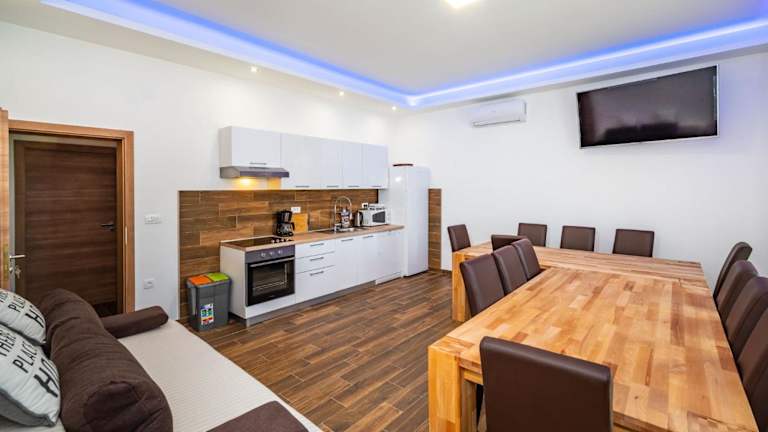 Die Group Holiday Accommodation Natura Croatia bietet Übernachtungsmöglichkeiten für bis zu 13 Personen. Die Unterkunft verfügt über einen eigenen Strandbereich sowie eine Terrasse mit Grillmöglichkeiten. Kostenfreies WLAN ist verfügbar, ebenso wie ein Privatparkplatz.