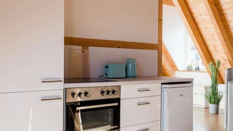 Die Ferienwohnung verfügt über ein Schlafzimmer, ein Wohnzimmer und eine voll ausgestattete Küchenzeile, die mit einem Kühlschrank und einer Kaffeemaschine ausgestattet ist. Des Weiteren gibt es ein Badezimmer mit Dusche und Haartrockner. Handtücher und Bettwäsche werden bereitgestellt. Die Unterkunft bietet Nichtraucherzimmer und eine Terrasse.