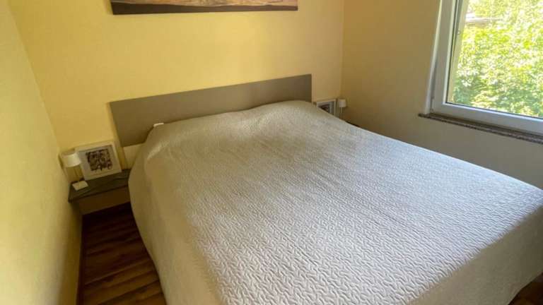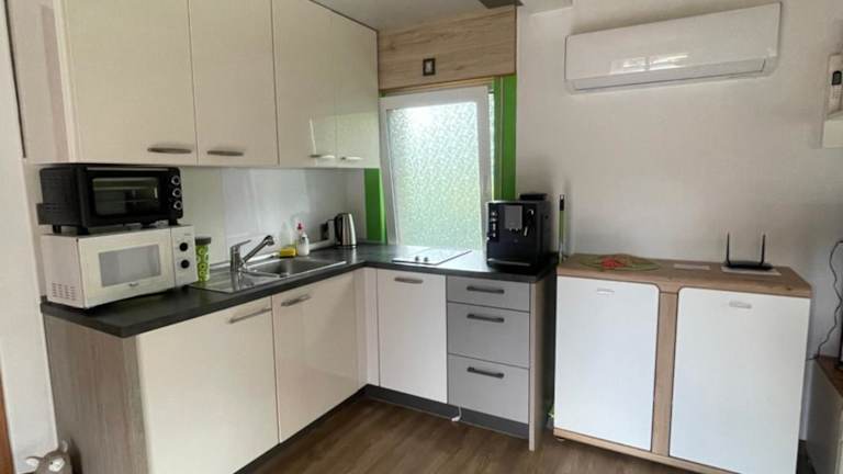 Das Ferienhaus verfügt über 2 getrennte Schlafzimmer, ein Wohnzimmer sowie eine voll ausgestattete Küche mit Kühlschrank und Geschirrspüler. Ein Badezimmer ist ebenfalls vorhanden. Handtücher und Bettwäsche werden bereitgestellt, und die Unterkunft ist klimatisiert.