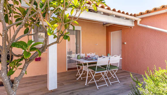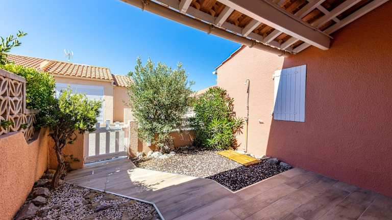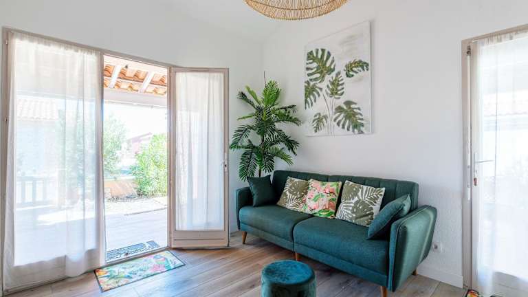 Gruissanne - Maison avec piscine, à 150m de la plage bietet eine Unterkunft mit einem saisonalen Außenpool, einem Garten und einer Terrasse. Zudem steht den Gästen kostenloses WLAN zur Verfügung. Die Unterkunft ist ein Ferienhaus, das über eine voll ausgestattete Küche, ein Schlafzimmer und ein Wohnzimmer verfügt.