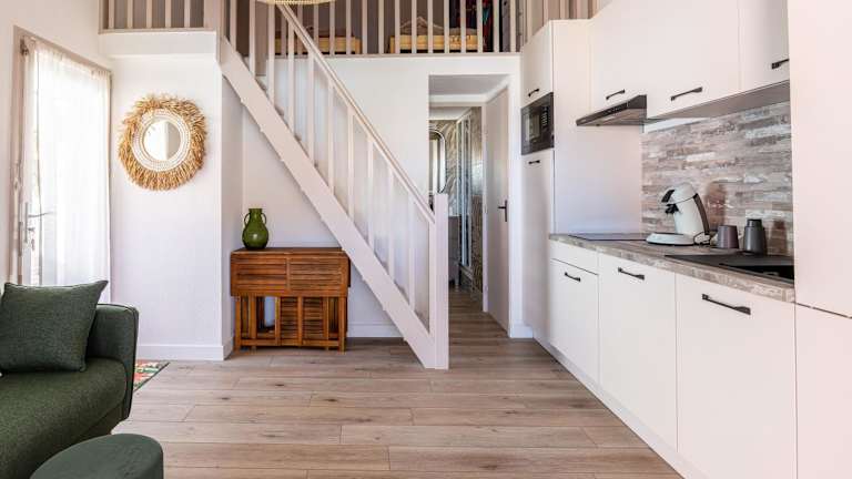 Die Unterkunft befindet sich in Gruissan, nur 500 m entfernt vom Strand Plage de Mateille. Weitere Strände wie Plage Creneau Naturel sind 1,8 km entfernt, während der Zoo Réserve de Africaine de Sigean 34 km entfernt liegt. Der Flughafen Béziers Cap d'Agde befindet sich 58 km weit weg.