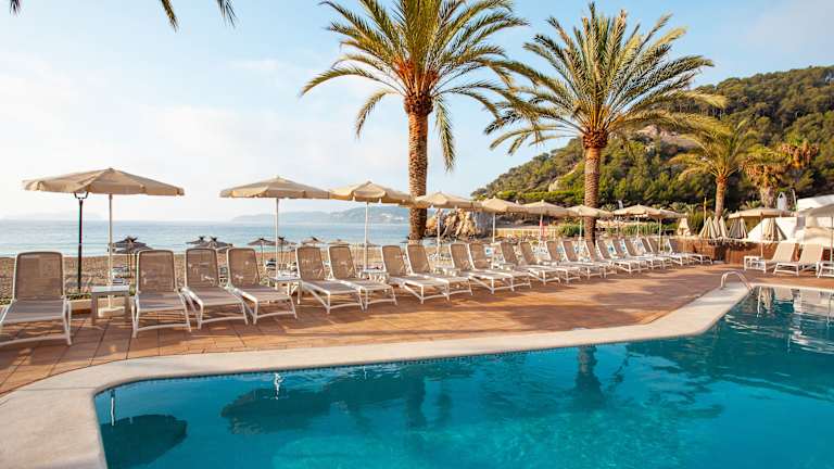 Das Hotel befindet sich im Nordosten Ibizas in der ruhigen Bucht Cala San Vicente mit direktem Zugang zum Strand. In der Umgebung sind kleine Geschäfte vorhanden. Der Flughafen ist ca. 40 km entfernt, Santa Eularia liegt in etwa 12 km Entfernung. Die Bucht bietet Tauchgelegenheiten und hat einen Sandstrand mit Liegen und Sonnenschirmen gegen Gebühr.
