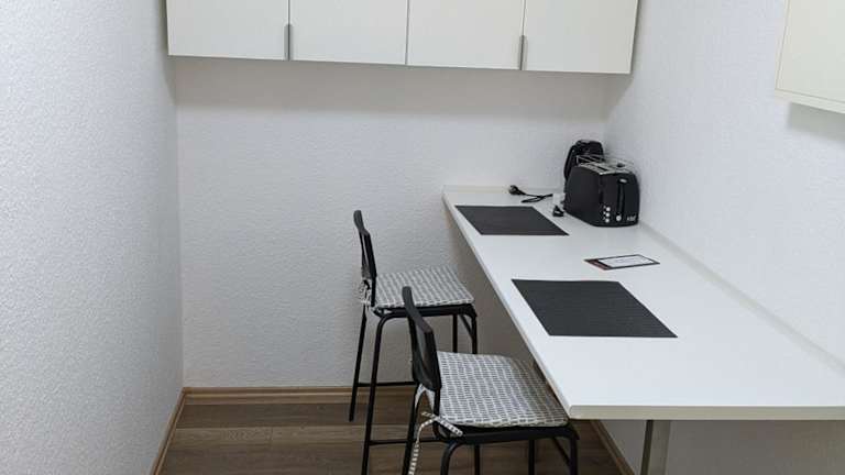 Die Zimmer sind mit einer Küche und einem Essbereich ausgestattet. Jedes Zimmer verfügt über ein Gemeinschaftsbad mit Haartrockner und Dusche sowie über Annehmlichkeiten wie Kühlschrank, Ofen, Mikrowelle, Kaffeemaschine und Wasserkocher.