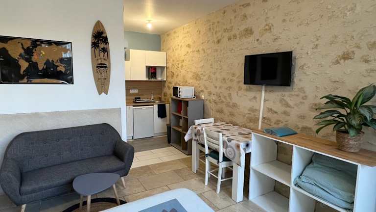 Das Apartment im Guest House de Céline et Benoît bietet Ihnen eine komfortable Unterkunft mit allen Annehmlichkeiten, die Sie für einen angenehmen Aufenthalt benötigen. Es verfügt über ein Schlafzimmer, ein Badezimmer, einen Essbereich und eine voll ausgestattete Küche. Die Ausstattung umfasst auch Bettwäsche, Handtücher und einen Flachbild-TV. Von der Terrasse aus haben Sie einen wunderschönen Blick auf den Garten. Kostenloses WLAN und Privatparkplätze stehen Ihnen ebenfalls zur Verfügung.