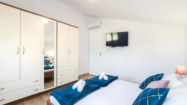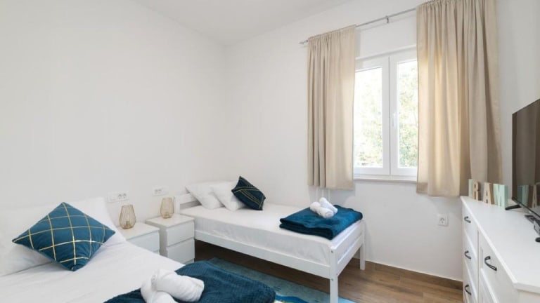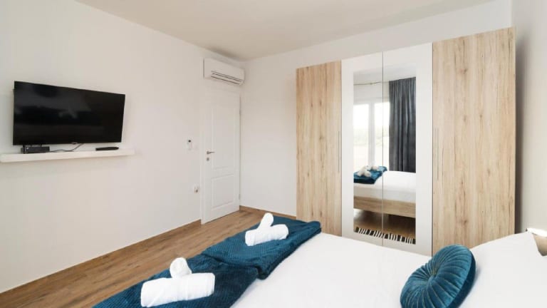 Das Guest House Mistral in Radovin, in der Region Zadar, bietet seinen Gästen eine komfortable Unterkunft mit kostenfreiem WLAN, Grillmöglichkeiten und einem saisonalen Außenpool. Die klimatisierten Zimmer verfügen über eine voll ausgestattete Küche, einen Flachbild-TV und ein eigenes Bad. Das Apartment liegt in der Nähe von Sehenswürdigkeiten wie dem Palast des Generalgouverneurs, dem Museum der Illusionen Zadar und dem Museum für Antikes Glas. Ein kostenfreier Privatparkplatz steht den Gästen zur Verfügung.