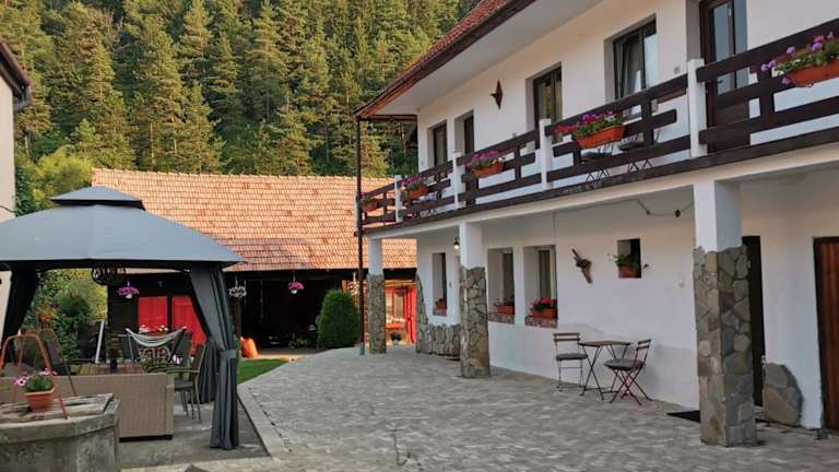 Das Guest House Piatra Craiului in Bran bietet eine charmante Unterkunft in der ersten Pension der Gegend. Hier erwartet Sie ein schöner Garten, kostenfreies WLAN und eine ideale Lage am Fuße der Berge. Genießen Sie den Komfort der Zimmer mit Flachbild-Kabel-TV und eigenem Bad. Starten Sie Ihren Tag mit einem leckeren amerikanischen Frühstück und erkunden Sie die Umgebung mit dem Fahrrad oder beim Skifahren. Der Parkplatz ist gut beleuchtet und eine Bushaltestelle ist nur 150 m entfernt. Besuchen Sie das Schloss Bran und das Horror House Bran, die beide in unmittelbarer Nähe liegen.