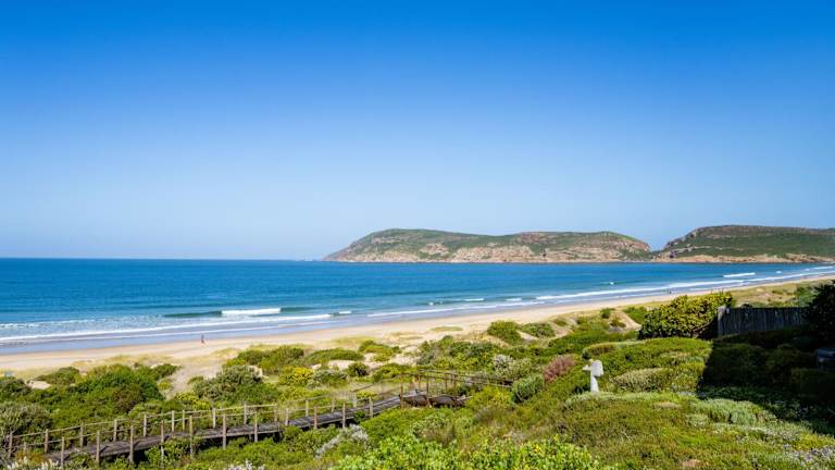 Das Southern Cross Beach House befindet sich in Plettenberg Bay mit direktem Zugang zum Robberg Beach über eine 80 m lange Promenade.