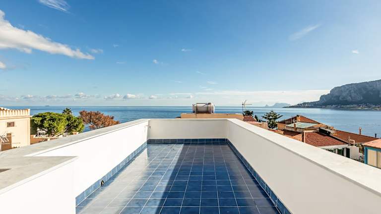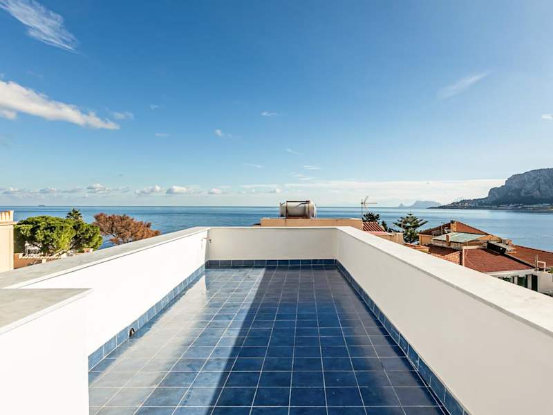 Alle Terrazze Blu - Mondello Sea View Apartment ist eine Ferienwohnung mit einer Terrasse und Meerblick, die kostenloses WLAN in der gesamten Unterkunft bietet.