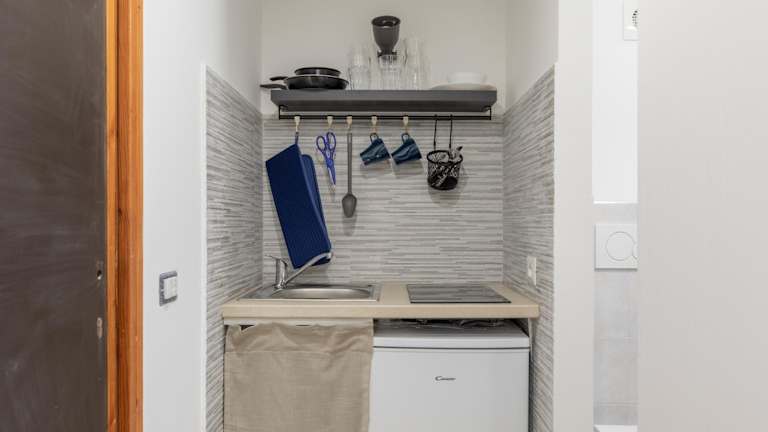 Die Ferienwohnung verfügt über eine Küchenzeile mit einer Herdplatte, die Selbstverpflegung ermöglicht. Es steht zudem ein Essbereich zur Verfügung, um Mahlzeiten bequem einzunehmen.