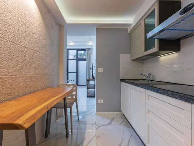 Die Ferienwohnung verfügt über ein Schlafzimmer und ein Badezimmer mit Bidet, Dusche und Haartrockner. Die klimatisierten Räumlichkeiten sind mit WLAN ausgestattet und bieten Nichtraucherzimmer.