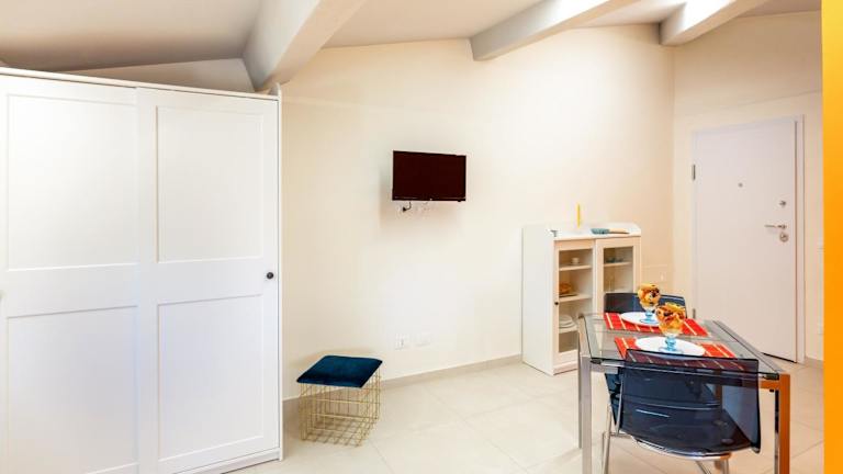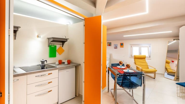 Die Appartements verfügen über eine voll ausgestattete Küchenzeile mit einem Essbereich, einen Flachbild-TV und ein eigenes Badezimmer mit einem Bidet und einem Haartrockner. Die Zimmer sind klimatisiert und bieten modernen Komfort.