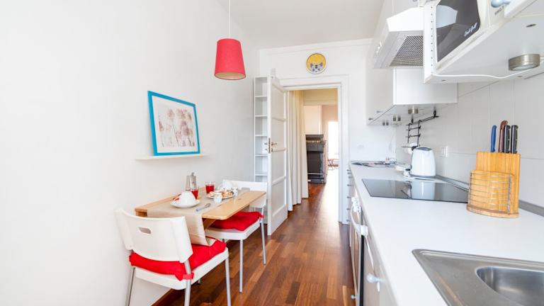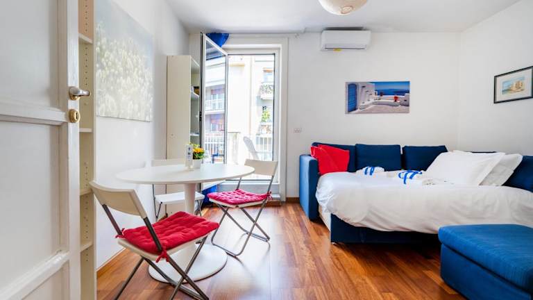 Die Ferienwohnung umfasst 1 Schlafzimmer, ein Wohnzimmer sowie eine voll ausgestattete Küche, die mit einem Kühlschrank und einem Wasserkocher ausgestattet ist. Zudem stehen 1 Badezimmer mit Bidet und Dusche zur Verfügung. Handtücher und Bettwäsche werden bereitgestellt.