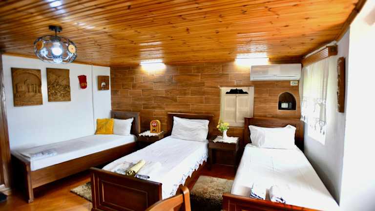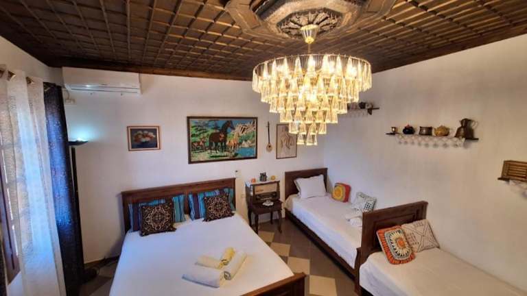 Das Guesthouse Alvaro Kadiu in Berat bietet Ihnen einen komfortablen Aufenthalt in einem charmanten Ambiente. Genießen Sie den Garten und die Terrasse, entspannen Sie an der Bar und nutzen Sie das kostenfreie WLAN. Der Zimmerservice, die 24-Stunden-Rezeption und der Geldwechsel-Service stehen Ihnen jederzeit zur Verfügung. Die klimatisierten Zimmer sind mit modernen Annehmlichkeiten wie einem Flachbild-Sat-TV, einem Kühlschrank und einem Wasserkocher ausgestattet. Einige Zimmer bieten einen herrlichen Blick auf die Stadt und verfügen über ein eigenes Badezimmer mit Badewanne und Haartrockner. Das kontinentale Frühstück ist ein perfekter Start in den Tag. Der internationale Flughafen Tirana liegt etwa 117 km entfernt.