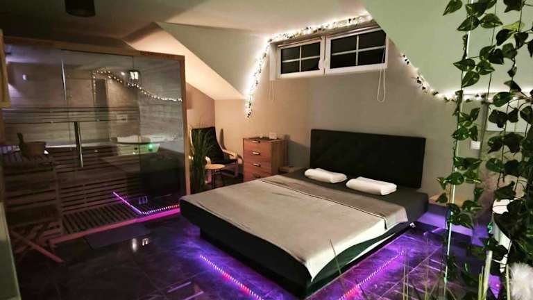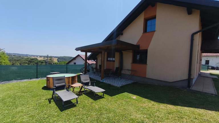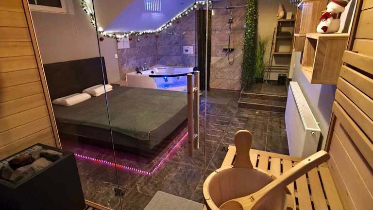 Das Ferienhaus im Guesthouse and Wellness VINEA verfügt über ein gemütliches Schlafzimmer, ein geräumiges Wohnzimmer und eine voll ausgestattete Küche mit Kühlschrank und Wasserkocher. Das Ferienhaus bietet auch zwei Badezimmer, eines mit Dusche und eines mit Whirlpool. Handtücher und Bettwäsche werden gestellt, um Ihren Aufenthalt so angenehm wie möglich zu gestalten.
