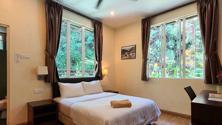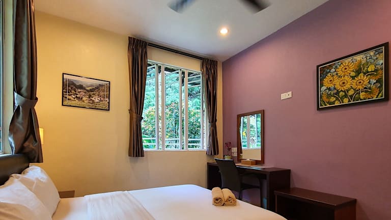 Das Hotel Arundina Cameron Highlands verfügt über insgesamt 7 klimatisierte Zimmer, die Ihnen einen angenehmen Aufenthalt garantieren. Jedes Zimmer ist mit einem eigenen Badezimmer ausgestattet, das über eine Dusche, ein Bidet und Hausschuhe verfügt. Kostenloses WLAN ist in allen Zimmern verfügbar und die Zimmer werden täglich gereinigt. Auf Anfrage können Sie auch Bügeleisen und Bügelbretter erhalten.
