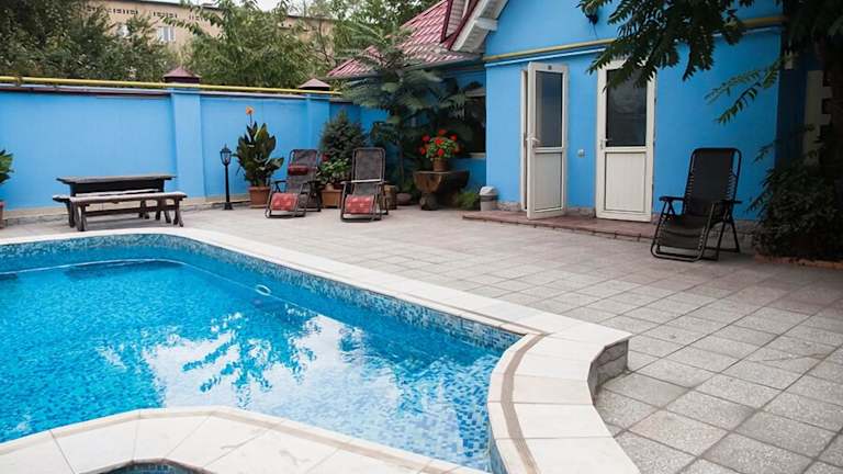 Im Hotel Asian Mountains können die Gäste den erfrischenden Außenpool nutzen, um sich an warmen Tagen abzukühlen und zu entspannen. Der Poolbereich bietet auch Liegen, auf denen Sie sich sonnen und die Umgebung genießen können.