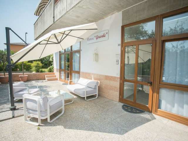 Das Hotel Camere Girasole liegt nur 1 km vom Ufer und den Stränden des Gardasees entfernt. Sie können die wunderschöne Umgebung erkunden und den See in kurzer Entfernung erreichen. Der Freizeitpark Gardaland ist nur 6 km entfernt und bietet Spaß und Unterhaltung für die ganze Familie. Die Stadt Verona und der Flughafen Verona Villafranca sind in nur 30 Fahrminuten erreichbar.