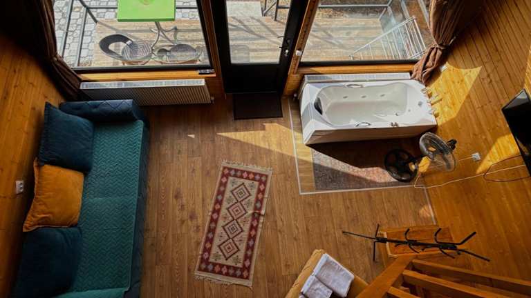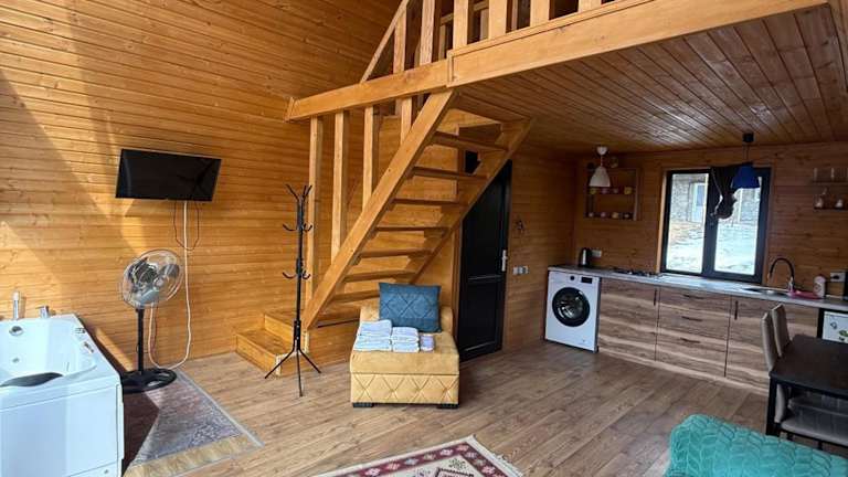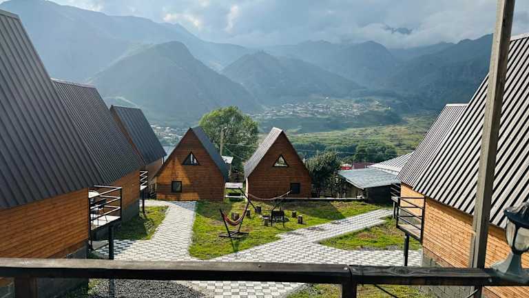 Das Guesthouse Elli & Cottages in Stepantsminda ist eine ideale Unterkunft für Reisende, die die Schönheit der umliegenden Berge und die malerische Umgebung genießen möchten. Mit Annehmlichkeiten wie einem Garten, einer Gemeinschaftslounge und einer Terrasse bietet das Guesthouse den Gästen eine entspannte Atmosphäre. Das kostenfreie WLAN, der Whirlpool und der Fahrradverleih sorgen für zusätzlichen Komfort. Die Zimmer sind gemütlich eingerichtet und bieten eine Terrasse mit herrlichem Bergblick. Einige Zimmer verfügen sogar über eine Küche. Das kontinentale oder vegetarische Frühstück und der Grillbereich bieten kulinarische Genüsse. Das Guesthouse Elli & Cottages liegt in der Nähe von Skigebieten und bietet Ihnen die Möglichkeit, die Gegend zu erkunden und Ausflüge zu unternehmen. Das freundliche Personal steht Ihnen rund um die Uhr zur Verfügung und spricht Englisch und Russisch.