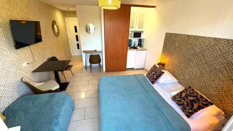 Entspannen Sie am Pool des Hotels oder gönnen Sie sich eine wohltuende Auszeit in der Sauna oder im Whirlpool. Die Unterkunft bietet auch Parkplätze, damit Sie bequem mit dem Auto anreisen können. Wenn Sie ein Elektrofahrzeug haben, stehen Ihnen sogar Ladestationen zur Verfügung. Erkunden Sie die Umgebung und besuchen Sie die Strände oder machen Sie einen Spaziergang durch das charmante Dorf Laverune.