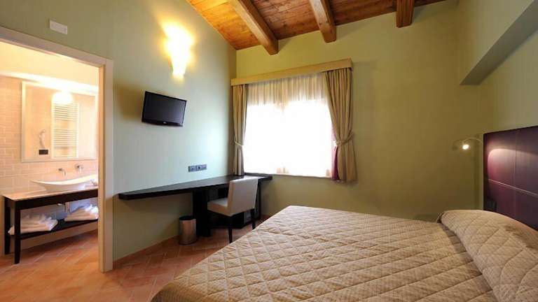 Die klimatisierten Zimmer im Magione Papale Relais bieten modernen Komfort und sind mit einem LCD-Sat-TV ausgestattet. Jedes Zimmer verfügt über ein eigenes Badezimmer und eine Minibar. Einige Zimmer bieten einen herrlichen Blick auf den Garten, der eine erholsame Kulisse bietet.