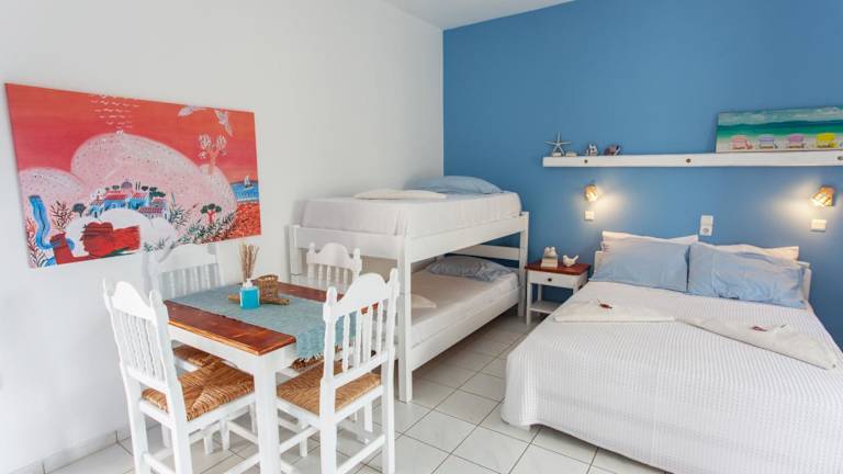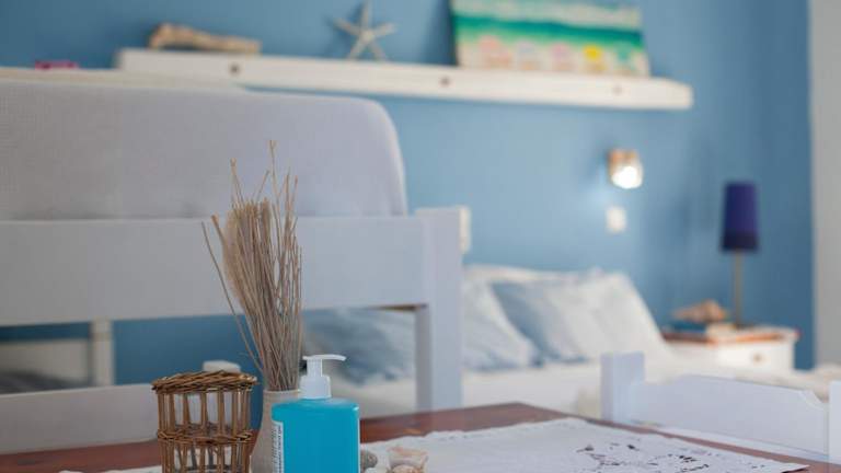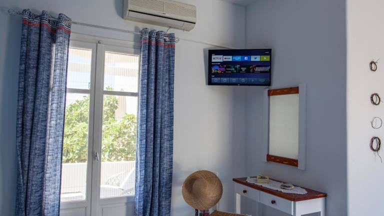 Die Zimmer und Studios im Perdikouli sind im charmanten lokalen Stil gestaltet, mit einer Kombination aus Blau- und Weißtönen, die das Gefühl eines authentischen kykladischen Aufenthalts vermitteln. Jedes Zimmer verfügt über einen Balkon, auf dem Sie die mediterrane Atmosphäre genießen können. Zur Ausstattung gehören ein TV, ein Ventilator und eine Klimaanlage für angenehme Temperaturen. Die meisten Zimmer bieten auch eine Küchenzeile, in der Sie Ihre eigenen Mahlzeiten zubereiten können.