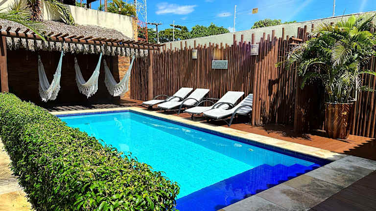 Das Pousada Oasis Paracuru bietet seinen Gästen einen erfrischenden Pool, der ideal zum Entspannen und Abkühlen ist. Der tropische Garten mit Hängematten lädt zum Verweilen ein und bietet einen schönen Ort, um die Natur zu genießen. Auf der 2. Etage gibt es einen Wohnbereich mit Blick auf das Stadtzentrum, der perfekt ist, um den Sonnenuntergang zu beobachten oder sich mit anderen Gästen auszutauschen.