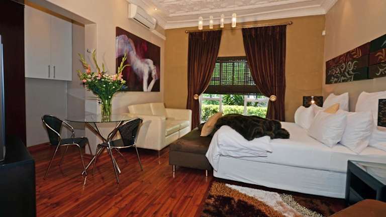 Das Saffron Guest House liegt in einer ruhigen Gegend und ist von einem gepflegten Garten umgeben. Es befindet sich in der Nähe des lebhaften Stadtteils Melville, wo Sie eine Vielzahl von Geschäften, Boutiquen und Kunstgalerien finden. Der internationale Flughafen O. R. Tambo ist mit dem Auto in nur 30 Minuten erreichbar.