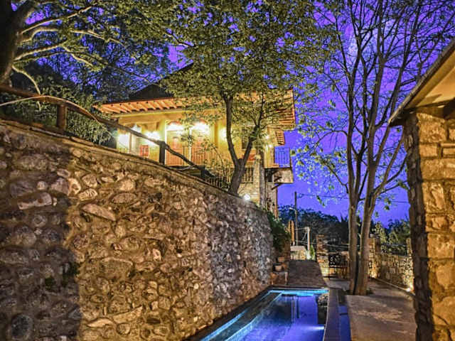 Das Santa Marina Guesthouse bietet gemütliche Studios zur Selbstverpflegung. Jedes Studio ist traditionell eingerichtet und verfügt über Steinmauern und Holzelemente, die ihm einen rustikalen Charme verleihen. Die Studios sind mit einer Küchenzeile, einem Sitzbereich und einem Essbereich ausgestattet, so dass Sie Ihre eigenen Mahlzeiten zubereiten und in Ruhe genießen können. Zur Ausstattung gehören auch ein Kühlschrank, Kochfelder oder ein kleiner Elektrobackofen, ein TV und ein eigenes Badezimmer mit einer Badewanne. Von den zwei Balkonen aus haben Sie einen schönen Blick auf den Garten und den majestätischen Berg Kaimaktsalan.