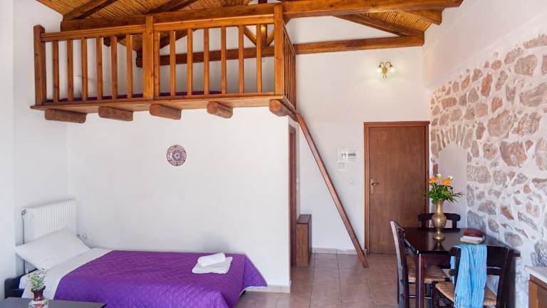 Die Apartments im Toxotis sind aus Stein gebaut und bieten eine einzigartige Atmosphäre. Jedes Apartment verfügt über gewölbte Wände und eine gut ausgestattete Küchenzeile mit Kühlschrank und Essbereich. Ein Kamin sorgt für Gemütlichkeit und auf der Veranda können Sie den atemberaubenden Blick auf den Golf von Messina genießen. Die Apartments sind klimatisiert und verfügen über einen TV und einen separaten Sitzbereich.
