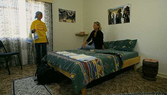 Die Villa Nina bietet ein Wohn- sowie Gästehaus und zwei Ferienhäuser, die das ganze Jahr über gemietet werden können. Insgesamt stehen 7 Doppelzimmer und 3 Einzelzimmer zur Verfügung. Die Zimmer sind ansprechend im afrikanisch-europäischen Stil eingerichtet, verfügen über ein Bad/Dusche sowie WC. Ein Ventilator, Wasserkocher, Kühlschrank und Sitzbereich gehören ebenso zur Ausstattung.