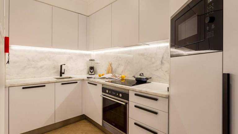 Die Ferienwohnung umfasst 1 Schlafzimmer, ein Wohnzimmer mit einem Flachbild-TV, eine gut ausgestattete Küche mit Kühlschrank und Geschirrspüler sowie ein Badezimmer mit Dusche. Handtücher und Bettwäsche sind in der Unterkunft vorhanden. Zudem gibt es einen Balkon mit Stadtblick.