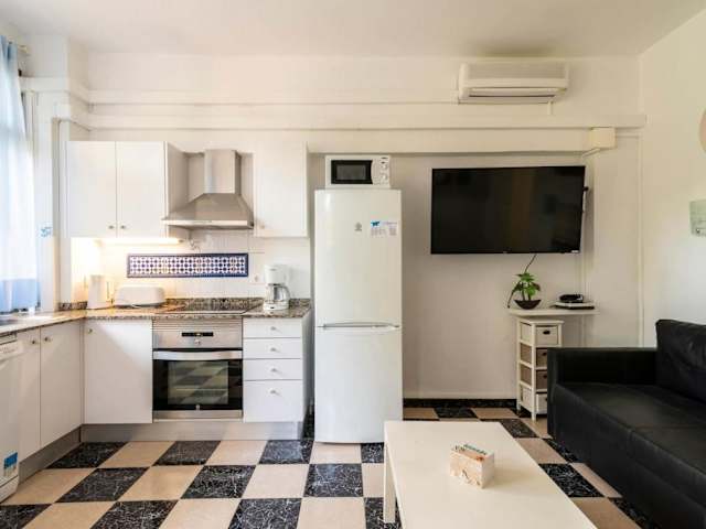Die Unterkunft bietet ein Apartment mit Klimaanlage, das über 1 Schlafzimmer, ein Wohnzimmer und eine voll ausgestattete Küche verfügt. Zu den Küchenelementen gehören ein Kühlschrank und ein Wasserkocher. Das Badezimmer ist mit einer Dusche und einem Haartrockner ausgestattet. Zu den Annehmlichkeiten zählen ein Flachbild-TV und ein Computer.