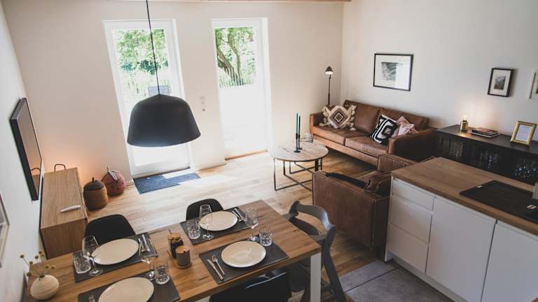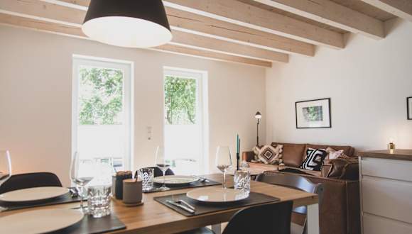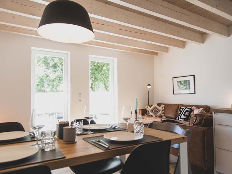 Die Ferienwohnung ist ausgestattet mit zwei Schlafzimmern, einem Badezimmer, einem Essbereich sowie einer voll ausgestatteten Küche. Zur Ausstattung gehören unter anderem Bettwäsche, Handtücher, ein TV und eine Terrasse mit Gartenblick. Allergikerfreundliche Zimmer sind ebenfalls verfügbar.