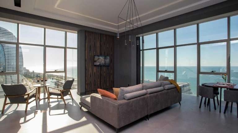 Das Gumbati Apart Hotel liegt im Bezirk New Boulevard, lediglich 300 Meter vom Strand Batumi entfernt. Es befindet sich in der Nähe diverser Sehenswürdigkeiten, darunter die Ali- und Nino-Statue in 2,8 km Entfernung sowie die Festung Gonio, die 11 km entfernt ist. Außerdem sind die Festung Petra und der Bahnhof Kobuleti in 24 km bzw. 28 km Entfernung erreichbar. Der nächstgelegene Flughafen, der Internationale Flughafen Batumi, befindet sich 6 km von der Unterkunft entfernt.