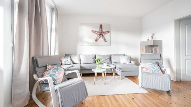 Die Ferienwohnung besteht aus 2 Schlafzimmern, einem Wohnzimmer sowie einer voll ausgestatteten Küche mit Kühlschrank und Kaffeemaschine. Ein Badezimmer mit Dusche und kostenlosen Pflegeprodukten ist ebenfalls vorhanden. Handtücher und Bettwäsche werden bereitgestellt.