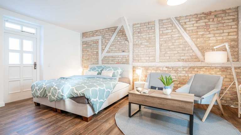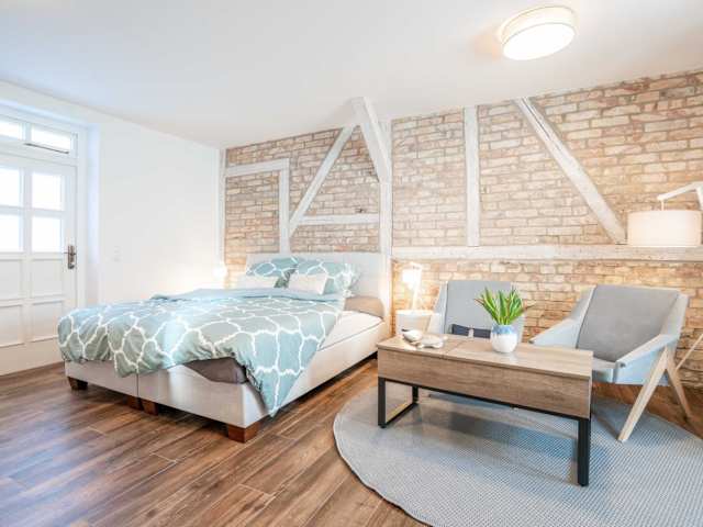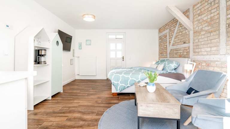 Die Ferienwohnung bietet ein Schlafzimmer, einen Flachbild-TV mit Satellitenkanälen sowie eine gut ausgestattete Küchenzeile mit Kühlschrank und Mikrowelle. Des Weiteren ist ein Badezimmer mit Dusche vorhanden. Handtücher und Bettwäsche sind inklusive.