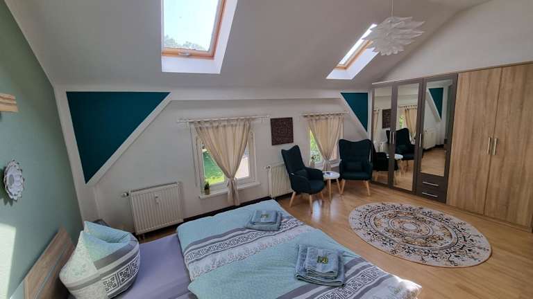 Die Unterkunft Gutshof Kämmerich - Fewo "Siebenschläferhöhle" befindet sich in Altkalen, umgeben von einer landschaftlich reizvollen Umgebung, die Möglichkeiten für verschiedene Outdoor-Aktivitäten bietet. Der nächstgelegene Flughafen ist der Flughafen Rostock-Laage, der 46 km entfernt ist.