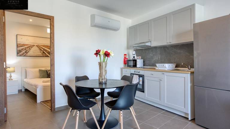 Die Zimmer sind mit einem Balkon und Meerblick ausgestattet. Zur Ausstattung gehören ein Sitzbereich, ein Flachbild-TV sowie eine voll ausgestattete Küche mit Kühlschrank, Ofen, Mikrowelle, Herdplatte, Toaster, Kaffeemaschine und Wasserkocher. Ein eigenes Badezimmer mit Dusche steht ebenfalls zur Verfügung.