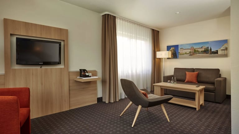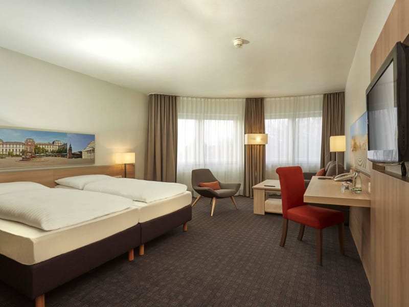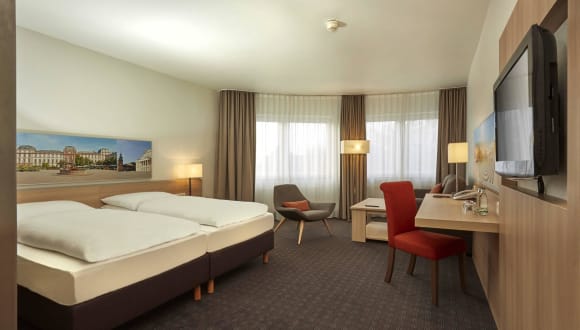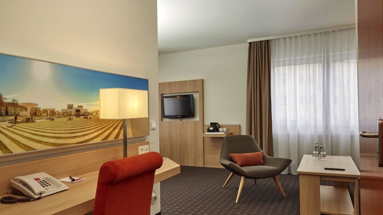 Das zentral und verkehrsgünstig gelegene H+ Hotel Darmstadt verfügt über 166 modern ausgestattete Zimmer. Schallisolierte Fenster, Klimaanlage, inklusives WLAN und Flachbildfernseher mit Sky Sports gehören zu den Annehmlichkeiten in allen Zimmern. Das Restaurant "Gaumenfreund" und die Hotelbar runden das Angebot ab und bieten vom reichhaltigen Frühstücksbuffet am Morgen bis zum Feierabend Cocktail am Abend alles für das leibliche Wohl. Parkplätze sind in der Tiefgarage gegen Aufpreis vorhanden.