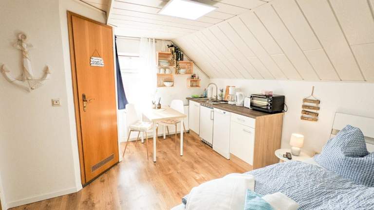 Die Ferienwohnung verfügt über 1 Schlafzimmer sowie eine voll ausgestattete Küche, die mit einem Kühlschrank und einem Geschirrspüler ausgestattet ist. Des Weiteren bietet die Unterkunft ein Badezimmer mit einer Dusche und einem Haartrockner. Handtücher und Bettwäsche werden bereitgestellt.