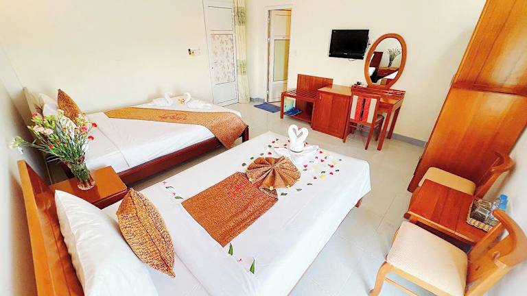 Die Zimmer im Ha Phuong Mui Ne Hotel sind mit einem Schreibtisch, einem Flachbild-TV, Bettwäsche und Handtüchern ausgestattet. Jedes Zimmer verfügt über einen Balkon, und viele bieten einen Meerblick.